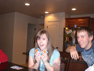We have lived in our house for almost four months and we haven't been able to find a time to invite Adam's parents up to see our house but we were finally able to find a time when we could invite them up for dinner and to see our new house. It was really nice to have them over and Adam took care of almost everything for dinner so I could just relax. After dinner we played Skip-Bo and I won it was awesome.